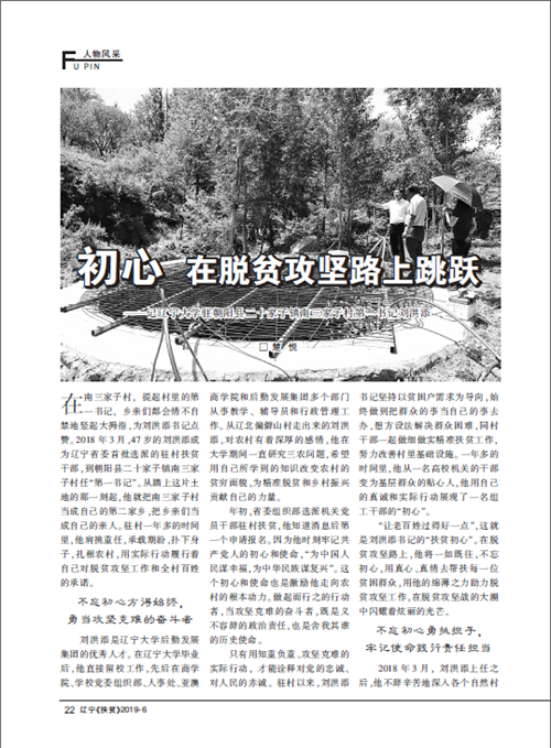 近日,《辽宁扶贫》2019年第6期(总第114期)在“人物风采”栏目以“初心 在脱贫攻坚的路上跳跃——记国产一区二区日本在线驻朝阳县二十家子镇南三家子村第一书记刘洪添”为题,对我校驻村扶贫干部刘洪添进行专题报道,并将其作为该期封面人物。现将原文转载如下: