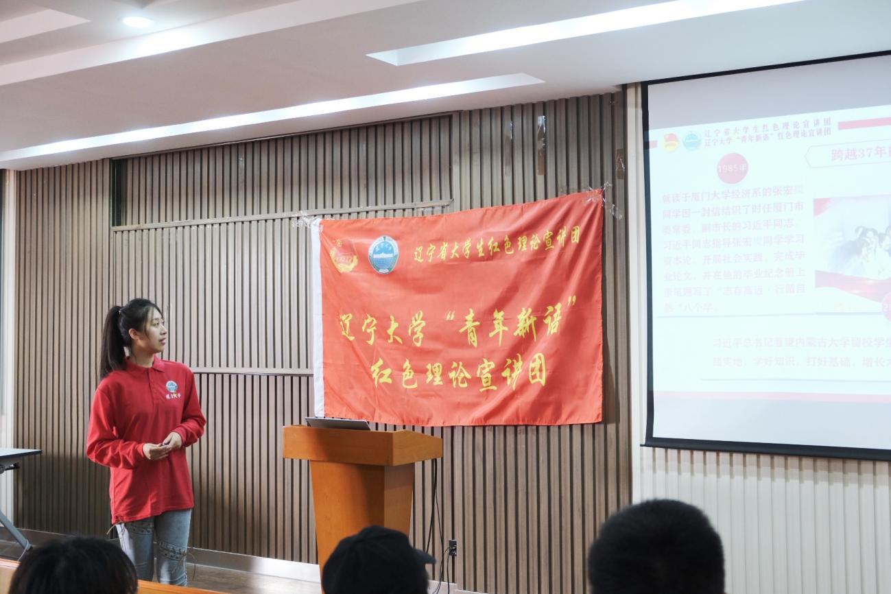 时代各有不同,青春一脉相承。在第一阶段的宣讲中,宣讲团的“初心宣讲员”们走进校“青马工程”第十二期大学生骨干培训班、校学生会(研究生会)、经济学院2022级财政学一班本科生团支部、校团支书培训班等,开展党的二十大精神宣讲,为同学们带来《非凡十年,与祖国共成长》《志存高远,脚踏实地,做新时代好青年》《让青春在创新创造中闪光》等主题宣讲,讲述了辽大青年永远听党话、跟党走,奔赴祖国西部开展志愿服务,积极参加“三下乡”“返家乡”等社会实践活动,投身创新创造的青春故事,号召广大青年以实际行动学习贯彻党的二十大精神。